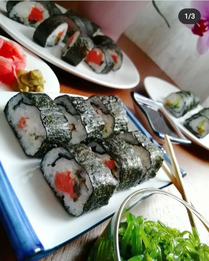 Как - то раз, давным - давно я решила сама попробовать приготовить роллы. Это был мой первый опыт и, честно говоря, он был неудачный🤭 Роллы получились просто огромные, такие, что их не возможно было нормально есть, не откусив пополам, но тогда они рассыпались🤪 После того случая я долго не решалась повторить данный эксперимент 😁 Но вот, много лет спустя, я все-таки решила рискнуть и приготовить роллы для детей)) Мальчишки их обожают☺️ да и я тоже очень люблю. Я посмотрела много видео рецептов, как правильно заворачичают роллы, учла все нюансы приготовления. И роллы получились великолепные! Ничуть не хуже, чем в ресторане! Так что, не бойтесь пробовать себя в чем-то новом🤗 Возможно, получится не с первого раза, но точно получится 👍 Ингридиенты: Рис для роллов— 250 г Уксус (рисовый) — 4 ч. л. Нори — 4 шт Сахар — 2 ч. л. Соль — 0.5 ч. л. Соевый соус Имбирь Васаби Сыр творожный — 150 г Авокадо 1 шт спелое Форель (слабосоленая) 200 гр Итак, готовим: 1)Рис промыть в холодной воде, пока