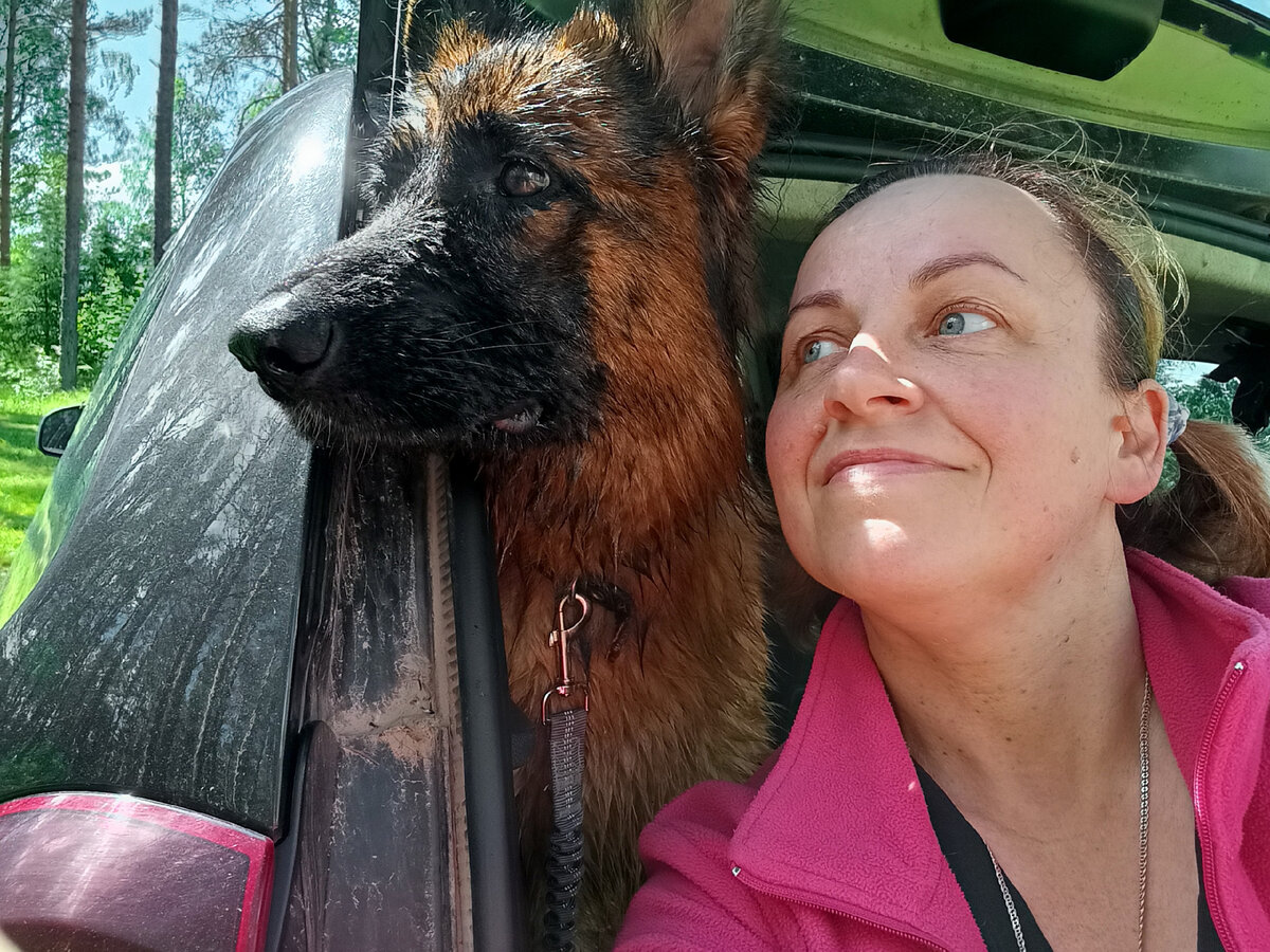 А уж озёрные ванны, которые с приходом тепла стало можно принимать без ограничений, и вовсе закружили носатую голову моей подружки. Думаю, может пора ей маску ныряльщика прикупить? Видите, она по самые уши кунает чёрный нос))!