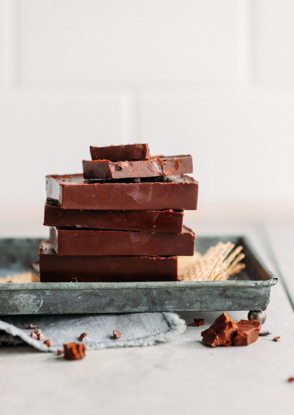 Почувствуйте себя шоколатье с этим несложным рецептом, состоящим всего из 5 натуральных ингредиентов. Идеальный полезный десерт, который так приятно иметь под рукой в течение дня. Важным является и то, что в его составе нет рафинированного сахара. Ингредиенты: Способ приготовления: 1. Добавьте воду (2 стакана или больше при необходимости) в среднюю кастрюлю и доведите до кипения на среднем огне. Затем уменьшите огонь и поставьте сверху среднюю стеклянную или керамическую миску, убедившись, что она не касается воды (это создаст эффект «пароварки»). 2. В эту миску добавьте мелко нарезанное какао-масло и кокосовое масло и дайте растаять, периодически помешивая деревянной ложкой или венчиком – около 2-3 минут. 3. После растапливания осторожно снимите миску с огня (выключите плиту), добавьте какао-порошок в сито с мелкими отверстиями и просейте его над растопленным какао-маслом (иначе оно может быть комковатым). Используйте венчик или деревянную ложку, чтобы перемешать до жидкого однород