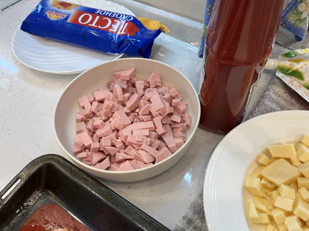 Привет дорогие друзья, меня зовут Алексей, я готовлю разные вкусные и простые блюда, у меня есть еще канал на ютубе, называется ДОМАШНЯЯ ЗАГОТОВКА там у меня больше 1500 видео разных направлений рецептов ,есть там плейлисты с разделами, я уверен вы точно подберете себе блюдо на любой вкус, я очень стараюсь для вас ,если вам интересно заходите и на ютубе канал буду очень рад с вами подружится, там же можете оставить мне комментарий, с радость на него отвечу ,еще друзья попрошу вас писать комментарии и ваши пожелания ,вместе с вами и прекрасным настроением всегда, на приготовлении сегодня у нас будет Ленивая пицца дома. Вкусно и просто вот такой у нас состав сегодня тесто слоеное размораживаем в холодильнике постепенно разворачиваем разрезаем на кубики примерно 10 на 10 поддон смазываем растительным маслом выкладываем наше тесто колбаску и твердый сыр нарезаем небольшим кубиком складываем все вместе добавляем немного майонеза (ну разок можно себя так побаловать) и кетчуп все перемешиваем