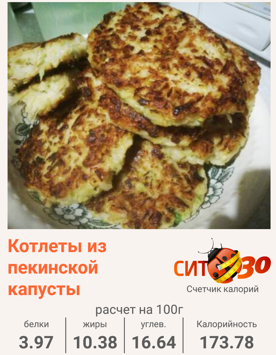 Для тех, кто любит разнообразные овощные блюда, хочу предложить на заметку очень легкий и весьма удачный вариант, как приготовить котлеты из пекинской капусты без фарша. Ингредиенты Лук репчатый 216 гр Манная крупа 74 гр Мука пшеничная 54 гр Пекинская капуста 575 гр Перец красный молотый и соль по вкусу Яйцо 65 гр Масло подсолнечное 71 гр Рецепт Пекинскую капусту промываем, подсушиваем, шинкуем. Подсаливаем и слегка разминаем, чтоб она пустила сок. Сок сливаем. Лук нарезаем и обжариваем на сковороде до румянца. Пекинскую капусту приправляем, добавляем сырое яйцо, манку , обжаренный лук и муку. Перемешиваем. Формируем котлетки и обжариваем на разогретой сковороде с двух сторон, на среднем огне. Приятного аппетита.