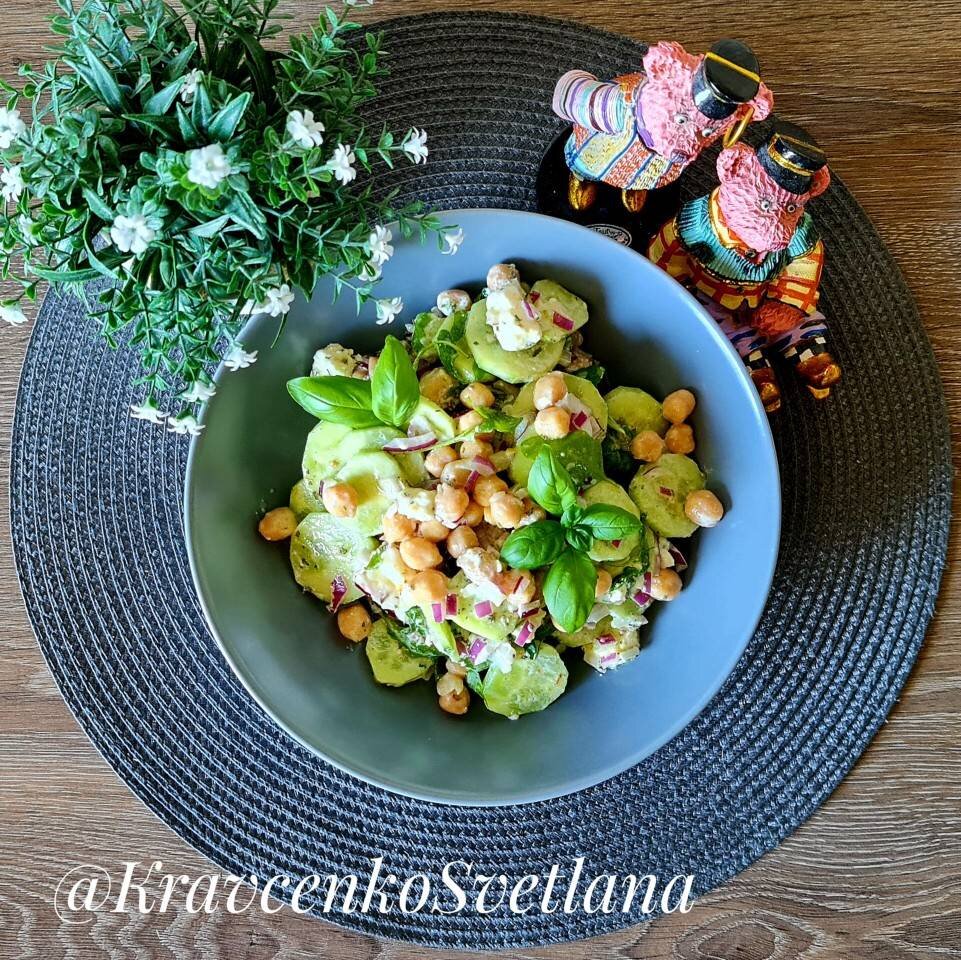 #летнееменю Быстрый в приготовлении, очень полезный и, конечно же, невероятно вкусный. Ингредиенты: консервированный нут, огурцы, красная луковица, авокадо, фета или брынза, прованские травы, соль, перец, оливковое масло, сок лимона, любой зелени по вкусу Способ приготовления: Подготовьте необходимые продукты. Огурцы порежьте кружками. Лук и авокадо порежьте кубиком. Добавьте к овощам нут. Соедините масло, лимонный сок, прованские травы, соль и перец. Покрошите фету. Заправьте салат. Приятного аппетита!