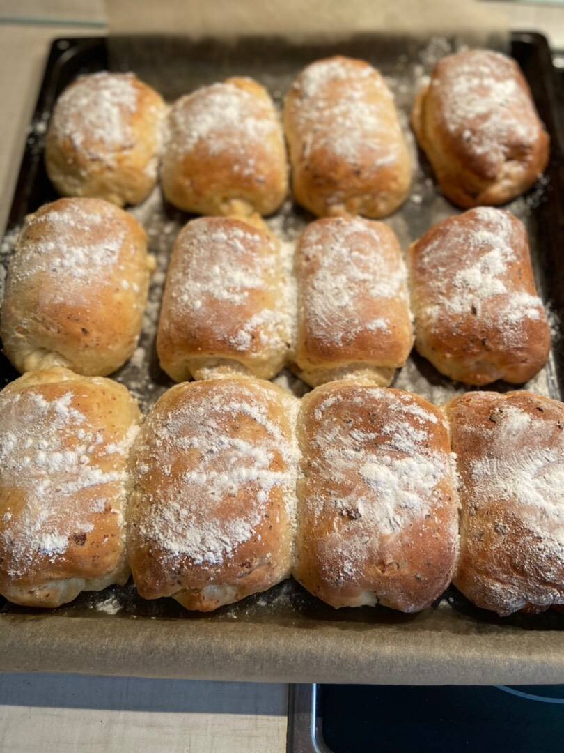 Ингредиенты: тёплого молока, дрожжей, творога, сахара, сливочного масла, яйцо, муки Способ приготовления: В тёплое молоко высыпать дрожжи и отставить в сторону. Смешать творог, сахар, яйцо и растопленное сливочное масло. Добавить молоко с дрожжами и размешать до однородной массы венчиком. Добавить муку и поставить подняться на 1,5 часа. Разделить тесто на 12 шариков и оставить постоять минут на 30. Из каждого шарика сделать лепёшку пальцами и положить на край джем. Завернуть сначала края, а затем свернуть рулетиком. Дать постоять ещё минут 15-20 и поставить в духовку на 25 минут при температуре 180 градусов.