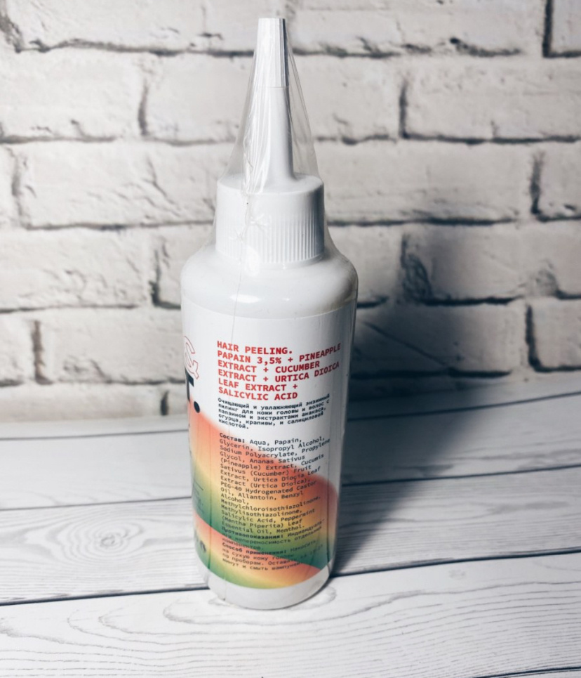 Моя кожа головы очень капризная, то дерматит начинается, то перхоть, поэтому пилинги и скрабы для кожи головы я использую на регулярной основе! Не так давно я познакомилась с классной маркой косметики ART&FACT и узнав, что у них есть пилинг для головы я сразу же без раздумий его заказала. О ПРОДУКТЕ 〰️ Энзимный пилинг для кожи головы и волос ART&FACT Очищающий и увлажняющий С папаином и экстрактами ананаса, огурца, крапивы и салициловой кислотой 〰️ Объём: 150 мл 〰️ Цена: 461 руб. 〰️ Место покупки: Wildberries 〰️ Производитель: Россия 〰️ Срок годности: 36 месяцев. СОСТАВ Aqua, Papain, Glycerin, Isopropyl Alcohol, Sodium Polyacrylate, Propylene Glycol, Ananas Sativus (Pineapple) Extract, Cucumis Sativus (Cucumber) Fruit Extract, Urtica Diocia Leaf Extract (Urtica Dioica), PEG-40 Hydrogenated Castor Oil, Allantoin, Benzyl Alcohol, Methylchloroisothiazolinone, Methylisothiazolinone, Salicylic Acid, Peppermint (Mentha Piperita) Leaf Essential Oil, Menthol. ИНФОРМАЦИЯ ОТ ПРОИЗВОДИТЕЛЯ Папаи