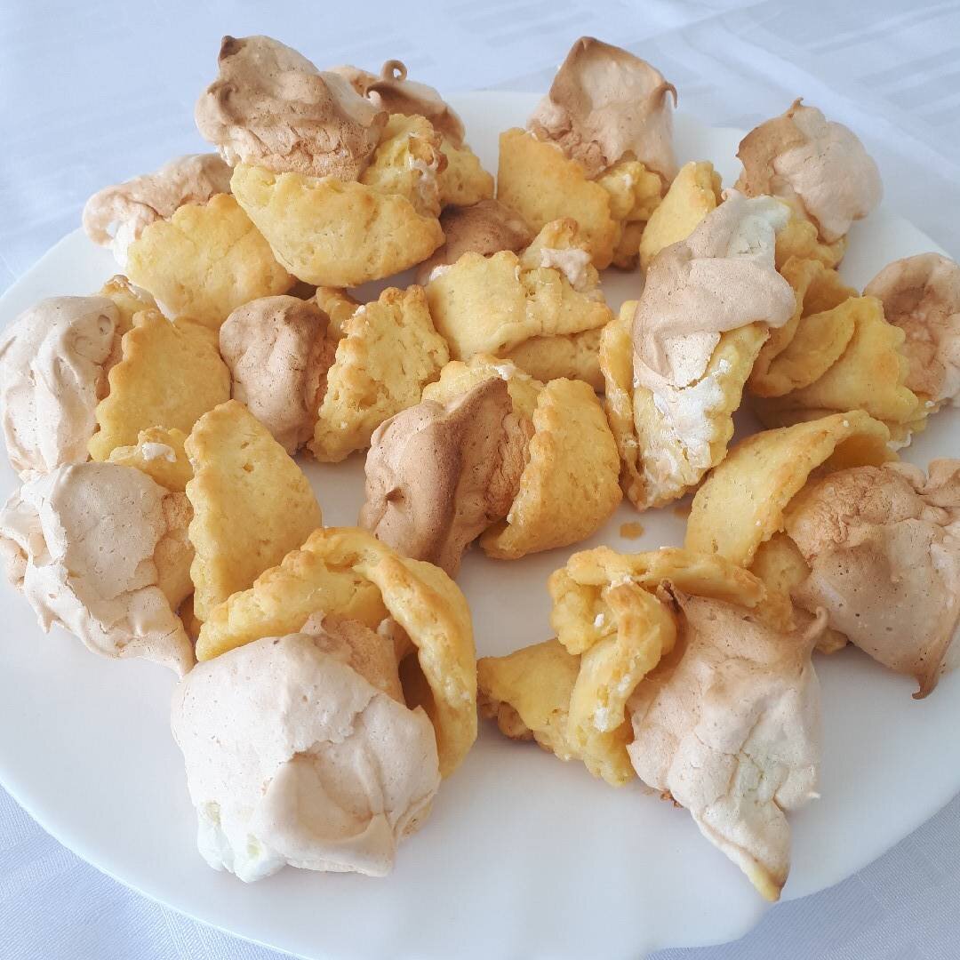 Делаются почти из ничего, а получаются чуть ли не пирожные. У меня нет весов, поэтому меряю всё стаканами. #печенье Ингредиенты: Для теста, желтка, растительного масла, густой сметаны, соли, муки, разрыхлителя, Для безе, белка, сахара Способ приготовления: Для теста соединяем всё жидкое, всыпаем всё сухое, замешиваем тесто. Раскатываем, вырезаем кружочки. Белки с сахаром взбиваем до пиков, выкладываем в центр кружочков, защипываем каждый кружочек с двух сторон, соединяем защипы. Кладём на противень. Печём при 180 градусах 15-20 минут. Аккуратно снимаем с противня. Приятного чаепития.