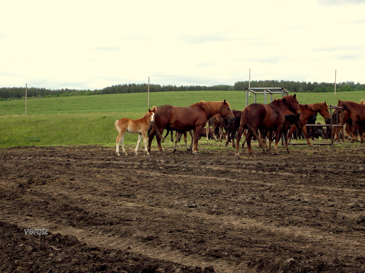 На холме колхоз, под холмом село .) В прошлый раз я Вам показал коровушек , в летнем лагере. Вот кони дружную толпою, под пристальным присмотром пастуха, бежали с пастбища гурьбою.