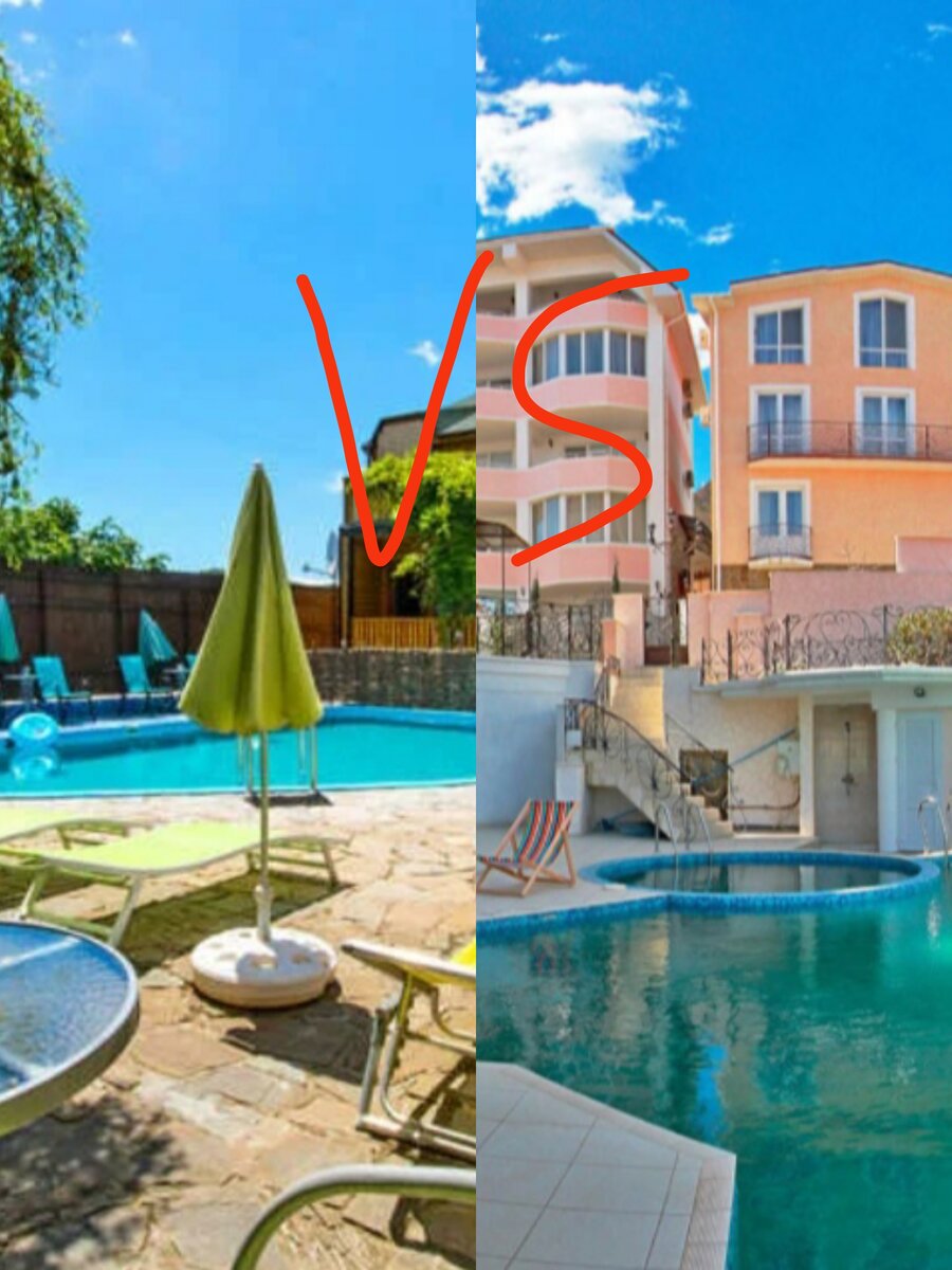 В прошлом году у нас был опыт проживания в Крыму и там и там. Первую часть отпуска мы провели в Частном гостевом доме в Судаке, а вторую часть в Алуште, в отеле "Все включено".