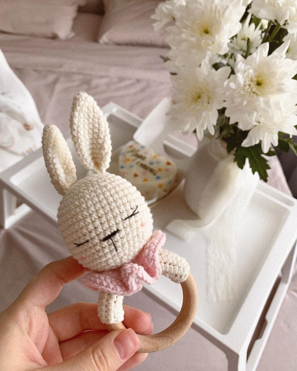 Эта игрушка, когда малышу пойдет 3-4-й месяц, станет любимой для него — все надо пробовать на вкус, да и десны начинают чесаться. Значит запасаемся прорезывателями. Никогда не угадаешь, какой прорезыватель понравится ребенку, — тканевый, деревянный, латексный или силиконовый. ❤️Мобиль на кроватку