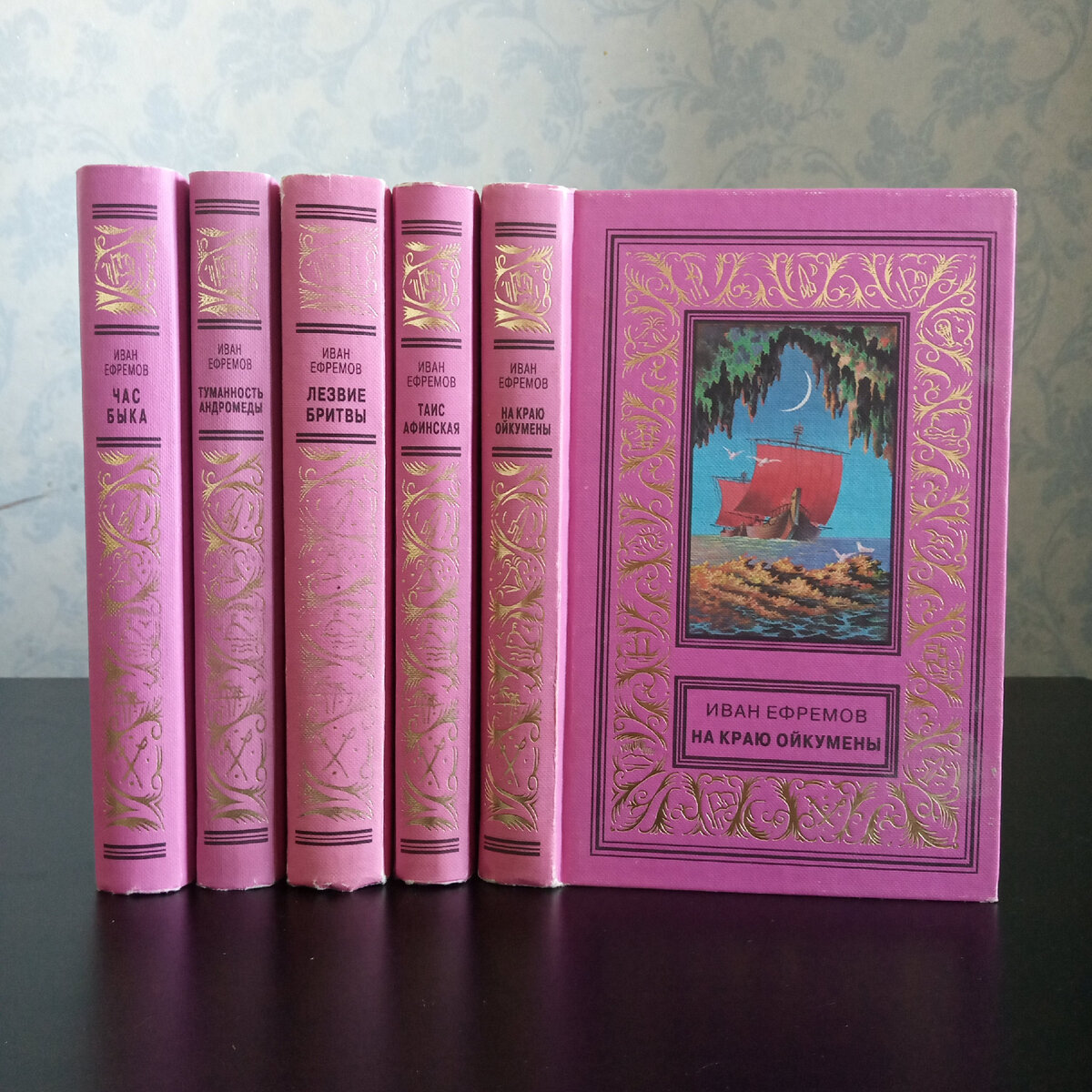 О книгах Ивана Ефремова надобно, конечно, сказать отдельно о каждой. Но поскольку мне попался под руку этот пятитомник, не мог удержаться и не сфотографировать его весь. Личность Ивана Ефремова (1908-1972), до того неординарная, что сразу и не подступишься. Палеонтолог, геолог, биолог, археолог, историк, философ. И представляете, какой он был писатель с таким багажом знаний. Невозможно было оторваться от его книг. Впервые я прочитал "Лезвие бритвы" лет в 13. Понял не всё, но был так очарован романтикой путешествий, что до сих пор помню первое впечатление. Спустя годы я вернулся к этой книге и был повторно очарован. Пару лет назад, я задумался, а не устарел ли Ефремов в наши дни, ошалелого прогресса, и обесценивания личности... Я достал с полки этот пятитомник, и с восторгом прочитал его ещё раз. Нет, не устарел. О каждой из этих книг, я потом расскажу подробно. А сейчас скажу только, что "Таис Афинскую" и "Лезвие бритвы" я читал трижды. И каждый раз как в первый раз...