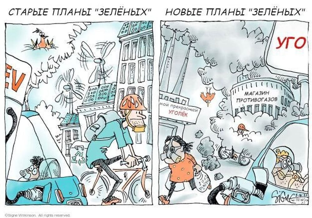 Но ради борьбы с Россией можно пожертвовать даже зелёными идеалами. Оно и понятно — зелёные активисты управляются из США, а для американцев кризис в Евросоюзе выгоден.