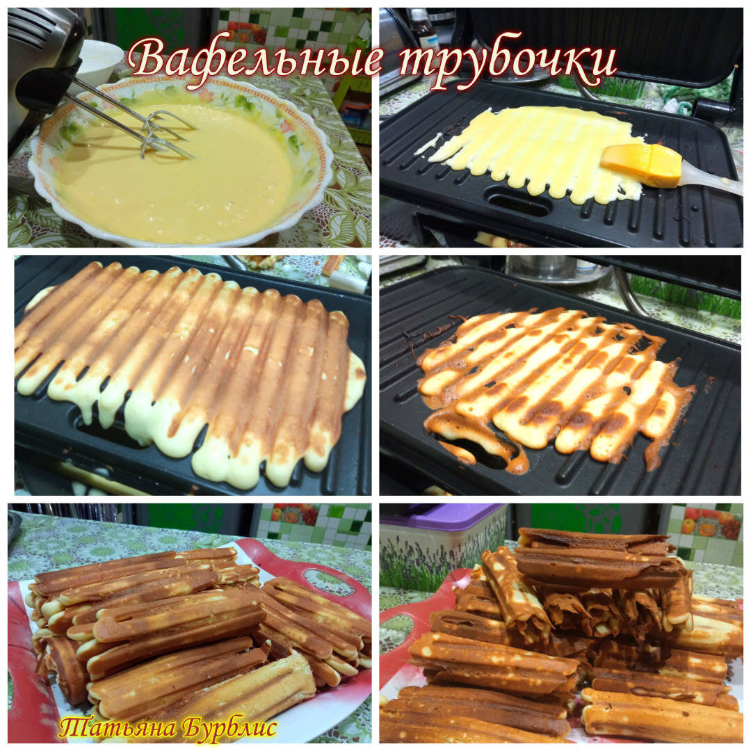 Всем привет! Сладости, которые мы ели в детстве, были самыми вкусными!Только там вместо масла был маргарин. Вафельницы у меня нет, ....вот и решила я их приготовить на электрогриле. По нему любые вафли получаются невероятно вкусными! Дома жарко...духовку включать не хочется...а внуки то требуют сладенького и бабушкиного... Ингредиенты: Яйца , Масло сливочное , Мука , Сахар , Ванилин Способ приготовления: В ёмкость разбиваем яйца, перемешиваем. Добавляем сахар (можно заменитель) и ваниль....перемешиваем. Добавляем растопленное сливочное масло. Перемешиваем и постепенно всыпаем просеянную муку. Тесто готово! Включила электрогриль. Налила тесто. Готовила толстенькие...наливала на панель 2 столовые ложки. Потом попробовала наливать 1 ст.ложку, ещё и кисточкой размазывала....получились тоненькие. Жарила с одной стороны до золотистого цвета. Примерно по одной минутке. Сразу горячими сворачивала трубочкой. И те и те нам очень понравились. Очень вкусно. У кого нет вафельницы, а есть электрогри