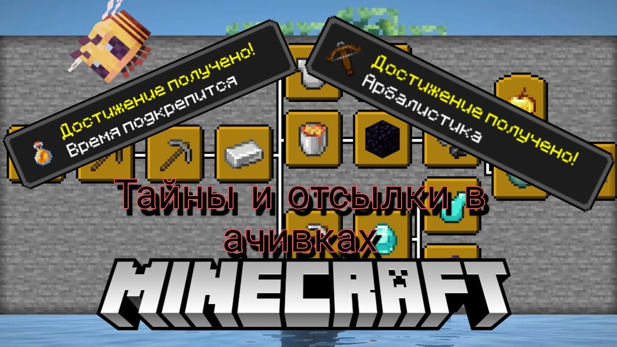 Всем привет! На связи Майнблогер +! В майнкрафте десятки достижений(они же ачивки) , а с каждым обновлением их становится всё больше и больше. Для большенства игроков это просто дополнение к игре не имеющея смысла, мало игроков специально выполняют их, а ещё меньше знают тайных смысл их названий . И сегодня (или завтра) я расскажу о нескольких таких ачивках. Я буду расберать именно версии ачивок на русском языке. Арбалистика . Что бы выполнить это достижение нужно убить 5 мобов одной стрелой из арбалета с чарами "пронзающея стрела". Название ачивки состоит из двух слов "Арбалет" и "Балистика" Балистика это наука о траектории полета снаряда(в данном случаи стрел). Но цель попасть не в одного моба, а сразу в 5. Поэтому это подвид балистики - арбалистика . Наука в майнкрафт ;) Самострел. Цель ачивки попасть стрелой из арбалета в моба . Самострел это "русская" версий названия арбалета, его использовали в среднее века. Время подкрепится. Цель достижения набрать бутылочку мёда из