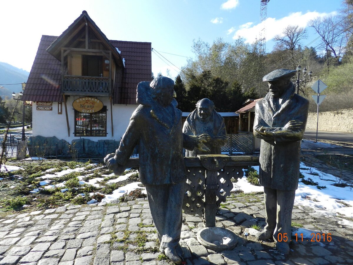 Памятник напоминает нам об игре талантливых актеров Ф. Мкртчана, Е. Леонова и В. Кикабидзе. Такие скульптуры всегда вызывают теплые чувства и положительные эмоции среди жителей всего бывшего СССР. Бронзовые фигуры киногероев дополняет изображение четвертого персонажа, без которого фильм был бы невозможен — Георгия Данелия. Кстати, в этом же году еще один памятник фильму «Мимино» был поставлен в Армении в городе Дилижан.