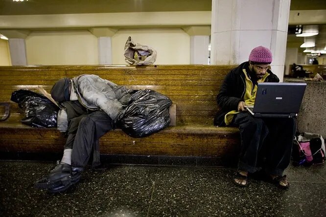 Отрывки из блогов американских и английских бездомных, которые ведут свои интернет-дневники, сидя на вокзалах, в интернет-кафе или просто на улице. HOMELESSFAMILY Джэксонвилль, Флорида, США Как оказался на улице: после того как его дом забрали кредиторы, жил в ночлежках с женой и детьми школьного возраста Мне наконец вернули часть налогов за тот период, что я не работал. Сняли на эти деньги номер в гостинице, что даст нам передышку и возможность как следует подготовиться к бездомной жизни. VIEW-SIDEWALK Гринсборо, Северная Каролина, США Как оказался на улице: потерял работу в крупном рекламном агентстве и оказался на улице с женой и тремя детьми, когда его дом был отобран из-за неплатежа по ипотечному кредиту У нас есть взятый напрокат грузовичок и арендованное место на складе, а у кота — новые хозяева. Все вещи, за исключением повседневно необходимых, будут погружены в грузовичок и отвезены на склад. В сборах прошел весь вчерашний день, потом вечер, потом ночь. В какой-то момент я с
