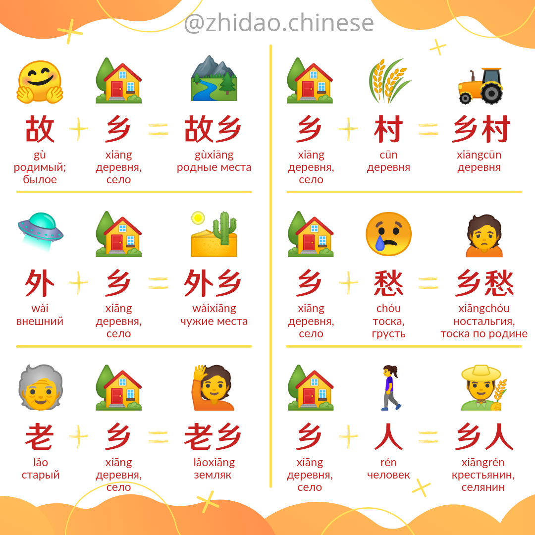 Слова с иероглифом 乡 xiāng - деревня, село 🏞️