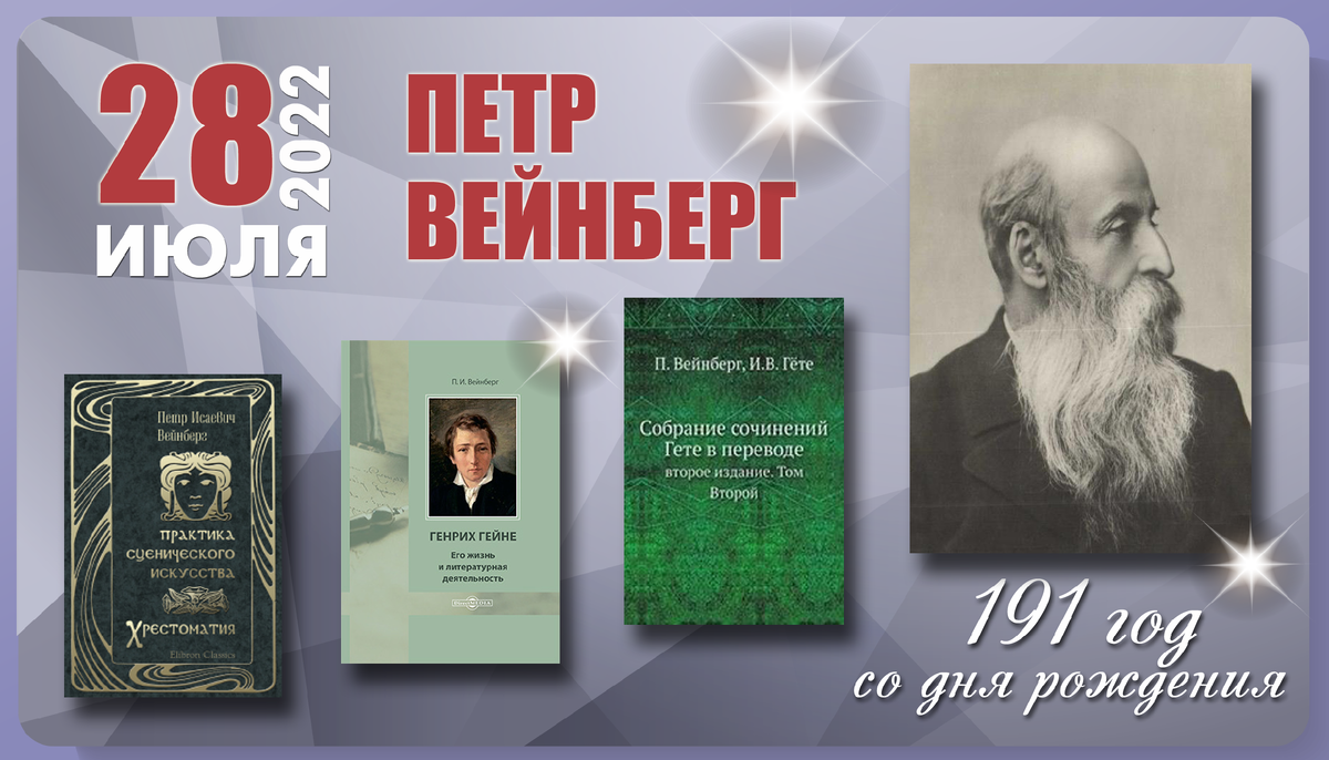 Здравствуйте, уважаемые читатели! Сегодня речь пойдет о великом поэте, переводчике, историке литературы, критике и публицисте Петре Вейнберге. Петр Исаевич родился 28 июня 1831 года. Вейнберг учился в Одессе, в гимназии при Ришельевском лицее и на юридическом факультете лицея. Окончил также историко-филологический факультет Императорского Харьковского университета. Петр Исаевич служил чиновником особых поручений при тамбовском губернаторе. Служил также чиновником в Главном интендантском управлении, был заведующим кафедрой и профессором русской литературы Императорского Варшавского университета. С 1874 года и до конца своих дней жил в Санкт-Петербурге. Состоял на службе при Собственной Его Императорского Величества канцелярии, преподавал на женских педагогических курсах и драматических курсах Театрального училища. А также был инспектором Коломенской женской гимназии. Литературная деятельность Вейнберга отличалась чрезвычайной интенсивностью и широтой. Сочинял стихи, пьесы и водевили. Ве