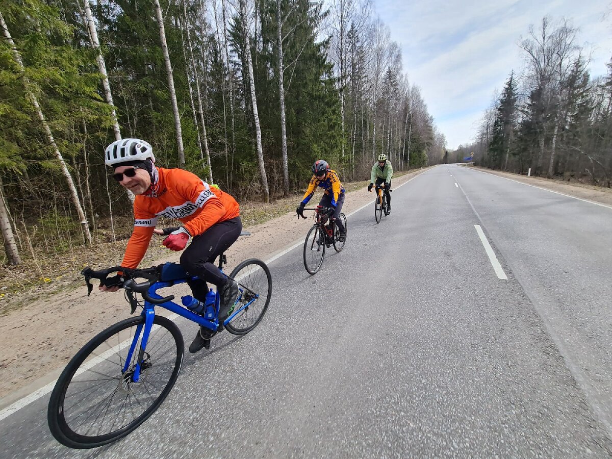 Так и катил в одно лицо, наслаждаясь этим, пока меня не нагнал парень на дико карбоновой Мериде. Изредка меняясь, доехали с ним до первого КП, от которого уже отъезжал Roll и сотоварищи. Но там всё ещё заправлялись мои юные друзья Сергей и Станислав. Дальше путь продолжили вместе.
