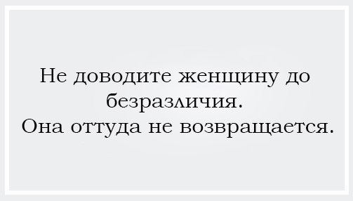 "Не доводите женщину до равнодушия, она оттуда не возвращается"..