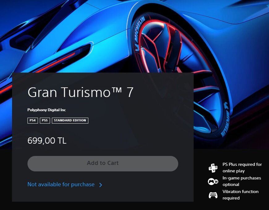 Однако, с Турцией не все так просто. Во-первых, нет возможности покупать игры напрямую с российских карт. А турецкой банковской карты, я думаю, у многих попросту нет. Во вторых, пополнение внутреннего кошелька аккаунта - тот еще геморрой. Для начала нужно заиметь виртуальную карту региона, а потом еще и пополнить через крипто-валюту или другими способами. В общем, если вы любитель особых извращений - то можете заморочиться с вариантом покупки игр на PlayStation в турецком регионе. Особенно учитывая курс валют. Например, Gran Turismo 7 на PS4 и PS5 получается в районе 2300 рублей.