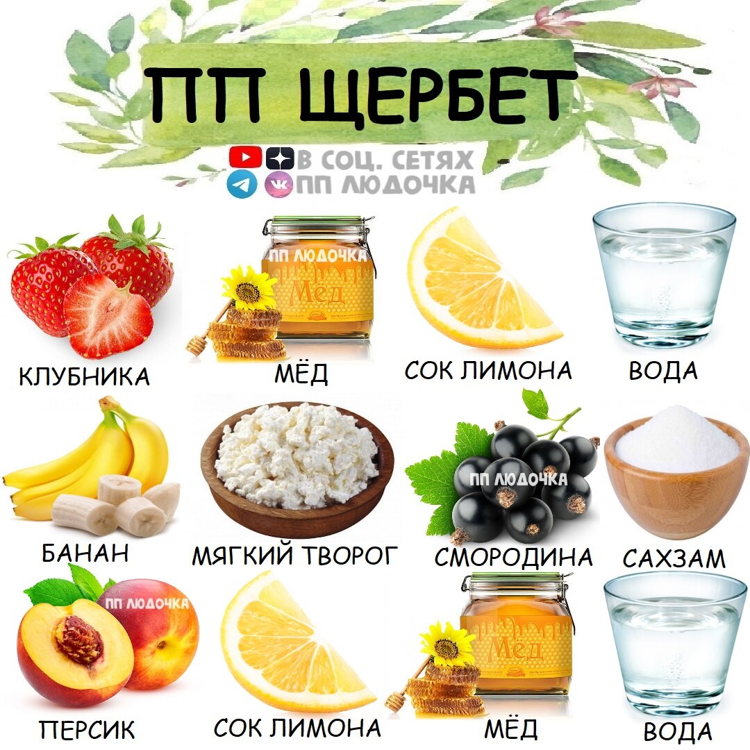 Не забываем подаваться, поставить лайк, а я буду и дальше заботиться о Ваших здоровье, долголетии и фигуре 💚 Минута и домашнее лакомство у Вас на столе! Натуральная свежесть на любой вкус! Никакого жира и лишних калорий! Никаких перемешиваний и льдинок! Идеальный вкус, цвет и консистенция! 😍 Готовить пп щербет можно из любых замороженных фруктов. Вот список лучших фруктов для приготовления этого ПП десерта: арбуз, банан, лимон, черника, персик, абрикос, клубника, малина, манго, дыня, апельсин. Для большей свежести можно добавлять - МЯТУ 🧊 ✅ Все, что вам нужно для приготовления: ▫️заморозить фрукты. ▫️измельчить их в блендере. 🍦 ВАРИАНТЫ: ▫️3 чашки клубники + 1 ст. л. меда +1 ч.л. лимонного сока +5 0 мл теплой воды. ▫️2 чашки клубники + половина банана + немного мяты ▫️2 спелых манго +1 ч.л. сока лайма + 50 мл теплой воды ▫️4 средних персика + 1 ст.л. меда +1 ч.л лимонного сока + 50 мл теплой воды ▫️4 чашки арбуза +1 ч.л. лимона + 1 ст.л. меда (если арбуз не очень сладкий) Стави