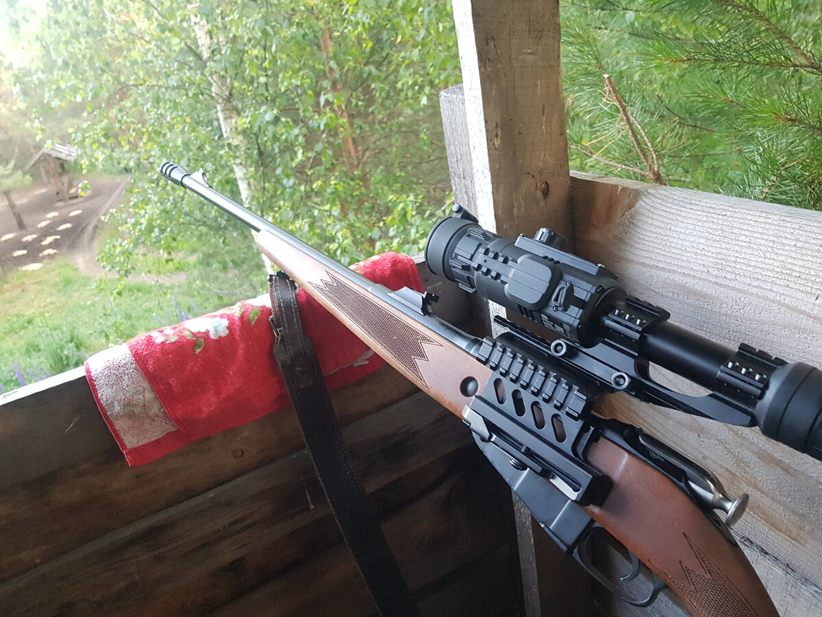 Вот и пролетели как день 5 лет охотничьего стажа до возможности взять нарез. На первом году я вожделел нарез как подросток сексапильную училку. Но вот незадача. На 4 году службы я завел спаниеля (точнее нормального спаниеля). И мир охоты по перу заиграл новыми красками. Теперь охота для меня это в первую очередь возможность пойти на охоту с собакой. Вышка На вышку я могу позволить себе съездить по деньгам раз - много - два в год. Для вышки надежный ствол у меня есть. Я взял ланкастер и подуспокоился. Ружбайка добычливая. Добыл с нее 3 или 4 кабана с вышки. У меня под нее пристрелян ночник, купил к ней матрицы, пулелейку порошковую краску, короче на случай большого П мощное (лося на скаку остановит..., да что лося - ведьмедя...) и вполне точное (чтоб попадать с рук в грудную мишень на 100 метрах) ружьишко для охоты в средней полосе России у меня есть. Загон. Мосяня для загона не удобна предохранителем. Осенью 21го пока с него снимал - лось сказал "ну как хочешь" И был таков.. Можн
