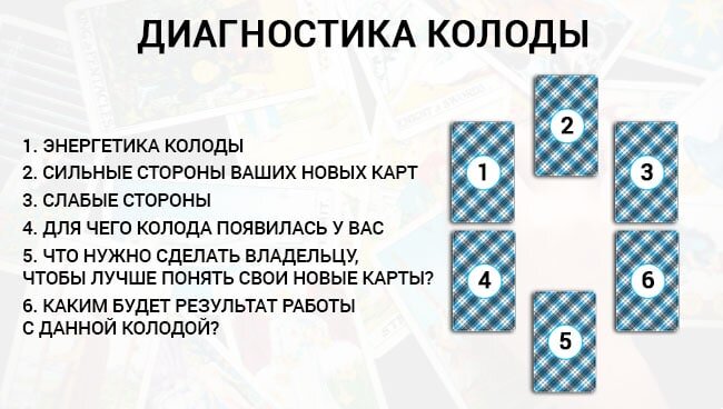🧧часть 1 Мы познали, что такое таро и как оно работает. Купили колоду и даже, зачем-то, почистили её. Но что теперь? С чего начать? Какие расклады делать? Какие расклады лучше сделать первыми? Существует 2 универсальных расклада, которые помогают познакомиться вам с колодой, а ей с вами: диагностика колоды и знакомство с колодой. Но начать советую именно с диагностики, так как она быстро даст вам понять + и - колоды и чего вам от неё ожидать. Схема расклада по диагностике будет ниже. Расклад на знакомство я советую сделать через время, так как там есть вопросы о вас. Так что пускай лучше колода понаблюдает за вами недельку, притрётся, и тогда можете найти просто в гугле "расклад на знакомство с колодой" и там чуть ли не 1ой картинкой выпадет схема ы Как раскладывать? Вы перемешиваете карты в руках столько, сколько вам нужно. Затем любым способом, хоть выдувая карту из колоды, хоть просто вытаскивая рандомно, вы выкладываете их по одной в том порядке, по той схеме, что вы выбра
