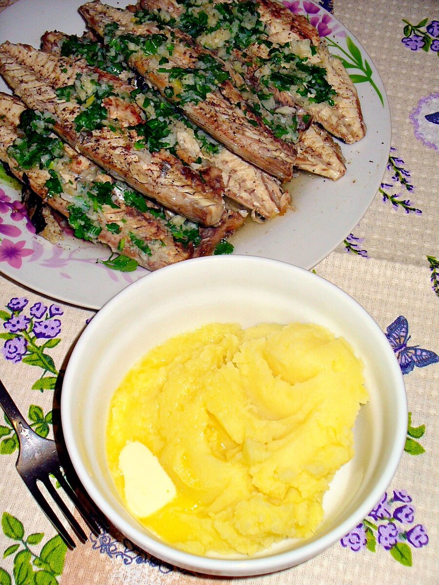 Отварная скумбрия с картофельным пюре. Почти диетическая)