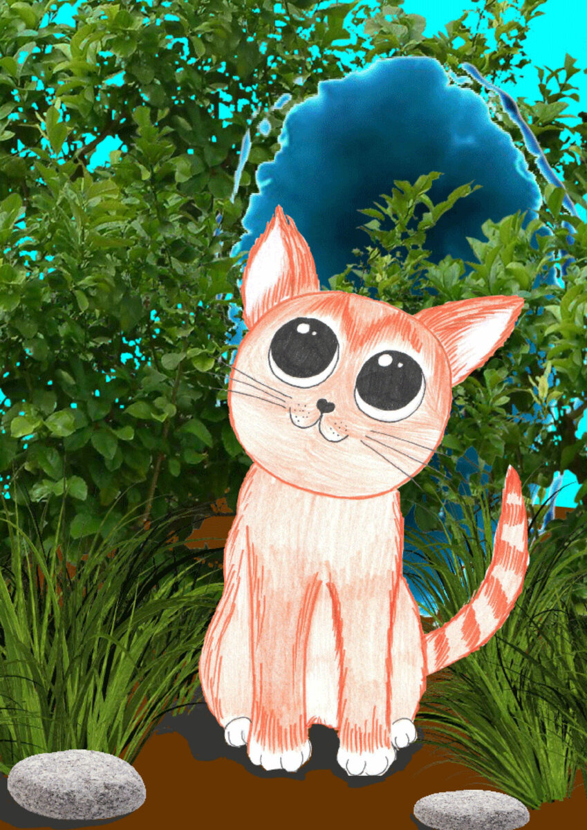 -«Наверное негодяи опять бросили какой-то стеклянный мусор в кусты», подумал котенок. Да в кошачьем мире тоже были коты негодяи, которые могли намусорить. Рыжик наклонился к кусту поближе, но почему-то ничего не увидал. Он посмотрел под кустом и за ним, раздвигал ветки, но ничего не нашел.