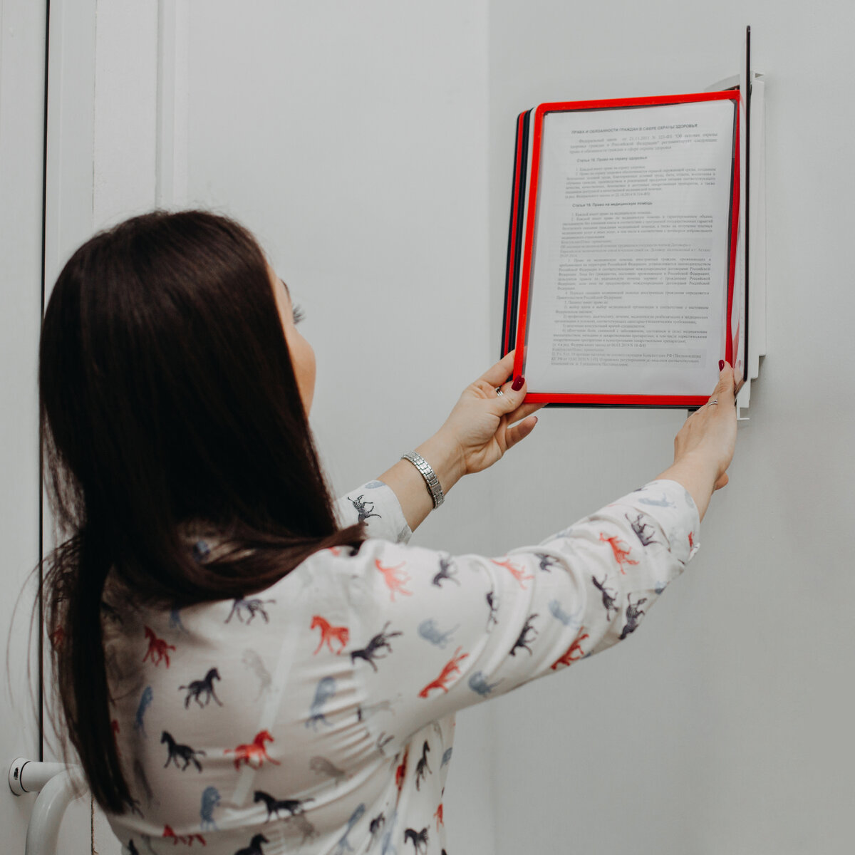 Правильно оформленный информационный стенд для пациента – один из важнейших блоков документов, который должен быть с первого дня, как открылись двери медорганизации. Данный раздел привлекает внимание представителей Роспотребнадзора и Росздравнадзора при проведении контрольно-надзорных мероприятий. Информационный стенд должен содержать: - наименование юр. лица с указанием его юр. адреса (или ФИО ИП с указанием адреса места жительства и адреса места осуществления мед. деятельности); - режим работы медорганизации; - часы приема руководителя медорганизации; - копия свидетельства о госрегистрации юр. лица или ИП в ЕГРЮЛ или ЕГРИП; - копия лицензии на осуществление медицинской деятельности с приложениями или выписки из приказа; - копия СЭЗ на помещение, в котором расположена организация, предоставляющая медуслуги; - договор на оказание платных услуг (образец) + ИДС (образец)/отказ от мед вмешательства (образец) + ОПД (образец); - прейскурант - перечень оказываемых платных медуслуг с указание