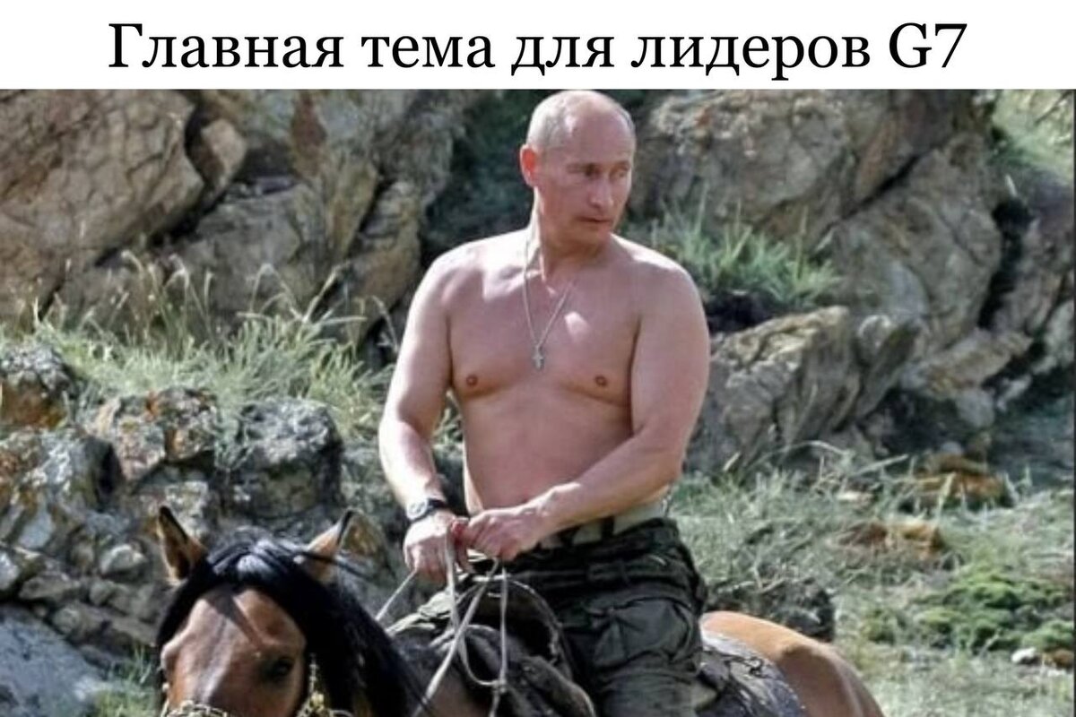 Любопытный разговор между представителями Большой Семёрки, подслушали журналисты. Борис Джонсон и Урсула фон дер Ляйен обсуждают фото Путина с голым торсом на лошади, сделанное 13 лет назад. Этот разговор не предназначался для посторонних ушей, но готовясь к фотосессии, участники этого диалога расслабились и позабыли, что они находятся в окружении журналистов, которые следят за каждым их словом. Предложение Джонсона и Урсулы раздеться и с голым торсом сесть на лошадь повергло в шок мировую общественность. Я уже не говорю о том, что грудные мышцы этих персон – само по себе зрелище не для слабонервных. Хотя Джонсон наверняка в этом состязании дал бы фору Урсуле. Ибо его «грудные мышцы» намного больше Урсулиных. И хоть я надеюсь, что нам никогда не приведётся увидеть голый торс Джонсона и госпожи фон дер Ляйен, самое интересное в этом диалоге не размер их груди, а сам предмет этого разговора. Сейчас, когда весь мир стоит на пороге ядерной войны, когда все с замиранием сердца ждут, к чем