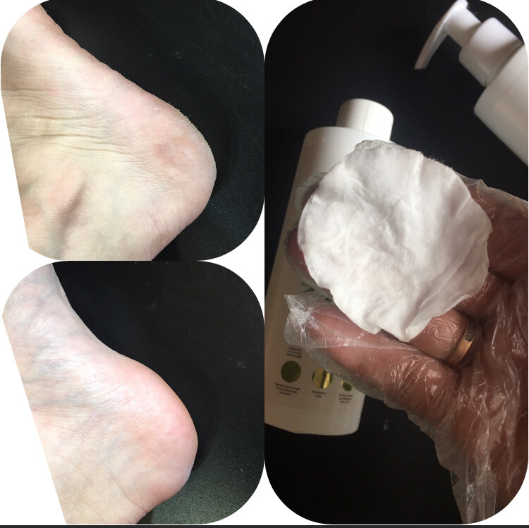 С огрубевшей кожей на пятках и ступнях сталкивается большинство женщин. Есть много способов избавиться от этой проблемы. Сегодня я расскажу об одном из самых быстрых, простых и эффективных способов. Для того, чтобы быстро убрать натоптыши и грубую кожу, можно использовать специальный ремувер, который буквально растворяет ороговевший кожный покров. Средство 6 в 1 от Миксит прекрасно справляется с поставленной задачей и при этом совсем недорого стоит (350 руб. на ВБ). Большой флакон объемом 250 мл расходуется экономно, хватит средства на достаточно большой период. Как применять Ремувер нужно нанести на ватный диск и приложить его к месту с огрубевшей кожей. Средство жидкое (как вода) и для того, чтобы пропитать ватный диск, его потребуется совсем немного. Во время использования нужно обязательно использовать перчатки. У меня кожа на пятках и на внешней стороне большого пальца грубеет очень быстро и требует постоянного ухода. Как правило, 2 раза в месяц требуется какая-нибудь процедур
