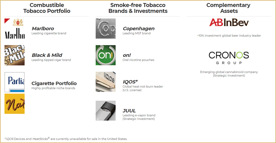 Altria Group - американская табачная компания, входит в число лидеров на мировом рынке. Является материнской компанией Philip Morris, производит сигареты под маркой Marlboro (права на территории США), Black & Mild, жевательные табаки Copenhagen и Skoal, а также вина Chateau Ste. Michelle, Columbia Crest, 14 Hands и т.д. Покупателями продукции Altria в основном являются оптовики, дистрибьюторы и крупные розничные магазины.