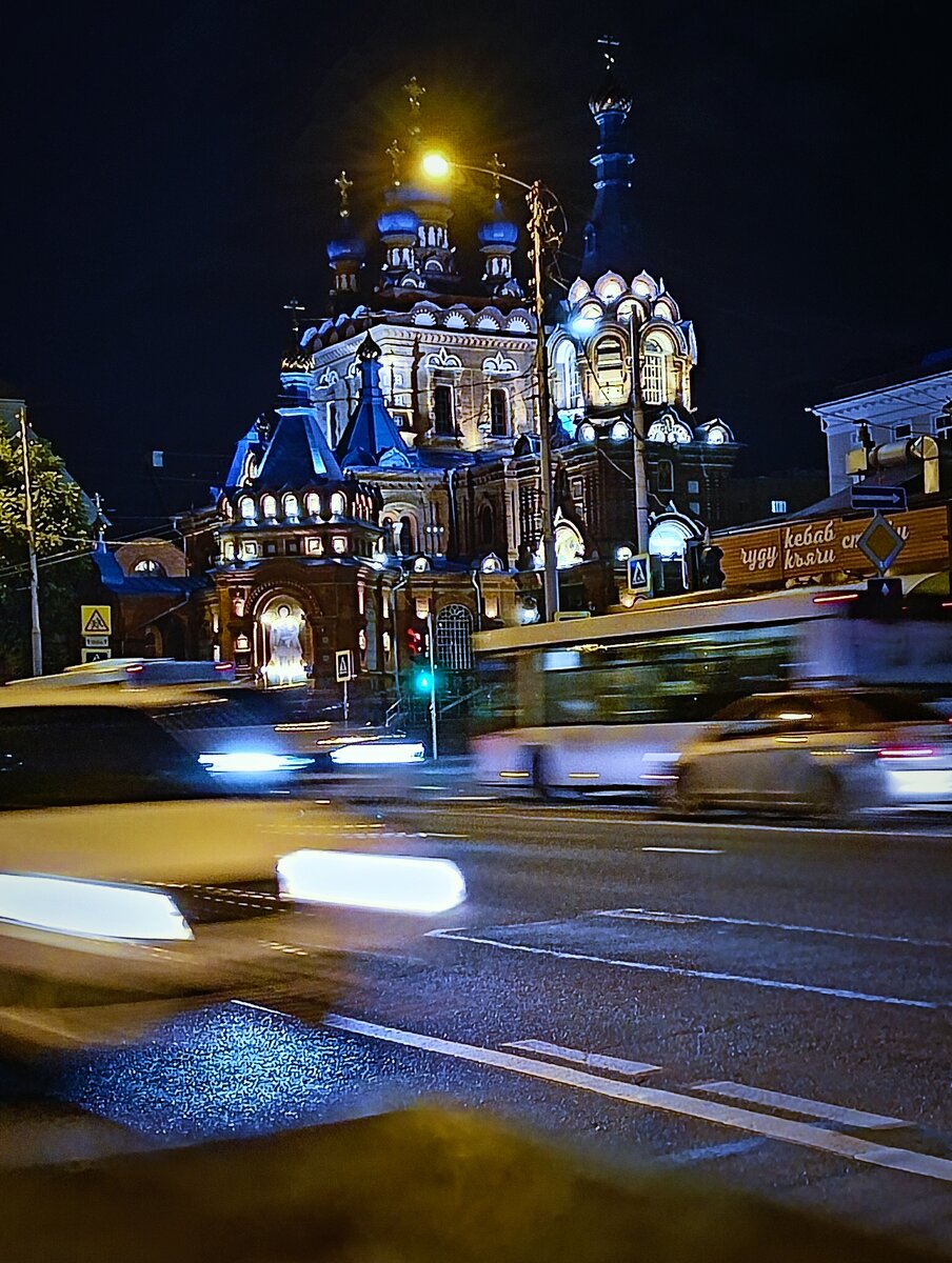 По ночному городу.