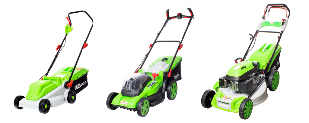 В ассортименте бренда REDVERG представлены три несамоходные электрические роторные газонокосилки:
