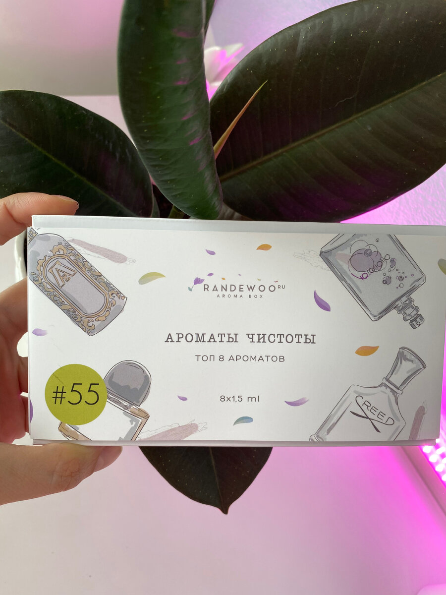 Лето для меня - это время легких, воздушных, нежных парфюмов. 🍃 В жару очень хочется продлить ощущение свежести после душа. И порой, не хочется пахнуть чем-то парфюмерным, хочется просто благоухать ухоженностью. Отличным вариантов для этого являются ароматы с нотками чистоты. 💦 Сегодня я поделюсь с вами своими впечатлениями от 8 ароматов на эту тему. Моё знакомство с ними произошло благодаря аромабоксу из интернет-магазина парфюмерии и косметики Randewoo.ru. В аромабокс входит 8 отливантов оригинальной парфюмерии. Объём миниатюрок - 1,5 мл. Флакончики сделаны из стекла. Каждого отливанта хватает на 35 распылений. Это очень удобно, чтобы познакомиться с разными ароматами, основательно протестировать их на себе и обновить свой парфюмерный гардероб. Ну и плюс, не всегда в магазинах есть в наличии тестеры, особенно если говорить и нишевой парфюмерии. Сейчас на Randewoo.ru проходит летняя распродажа со скидками до 50%. И у меня есть для вас промокод 10POTANINAT, он даёт скидку 10% и эт