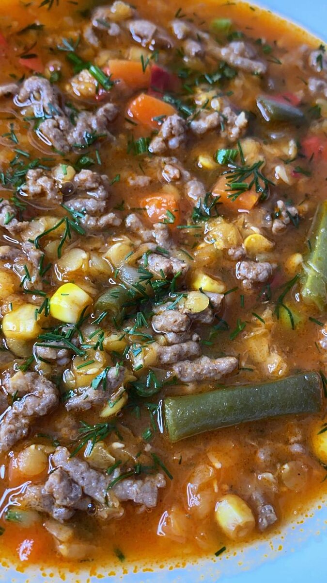 Друзья, всем привет! Сегодня представляю вам быстрый рецепт вкусного густого супа. Ингредиенты: 1. Мясной фарш (любое мясо) - 400 гр. 2. Замороженные овощи - 400 гр. 3. Чечевица красная - 120 гр. 4. Томатная паста - 2 ст. л. 5. Любимые специи. 6. Растительное масло - 2 ст. л . 7. Зелень. Приготовление: 1. Обжариваем фарш 5 минут на растительном масле в кастрюле с толстым дном. 2. Добавляем замороженные овощи и обжариваем все на сильном огне 5 минут. 3. Добавляем чечевицу, томатную пасту, соль и специи в кастрюлю. 4. Заливаем кипятком, доводим до кипения и варим на среднем огне 20 минут под крышкой. 5. Готовый суп приправляем рубленной зеленью (какую любите) и по желанию лимонным соком. Приятного аппетита. Всем отличного настроения друзья! Спасибо за ваши лайки. ПОДПИСЫВАЙТЕСЬ на мой канал, делитесь комментариями.