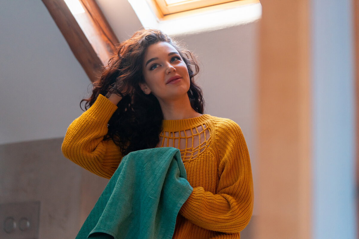 ✔ Замотайте волосы в микрофибровое полотенце (которое впитает лишнюю влагу) на 20–30 минут, и лишь затем наклоните голову и высушите волосы феном на режиме холодного или теплого воздуха.