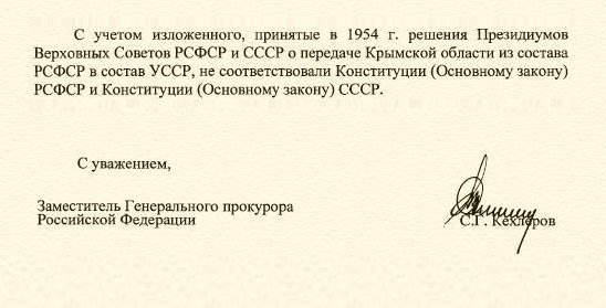 27 июня 2015 года Генпрокуратура РФ признала незаконной передачу Крыма Украине в 1954 году – не соответствовала Конституции
