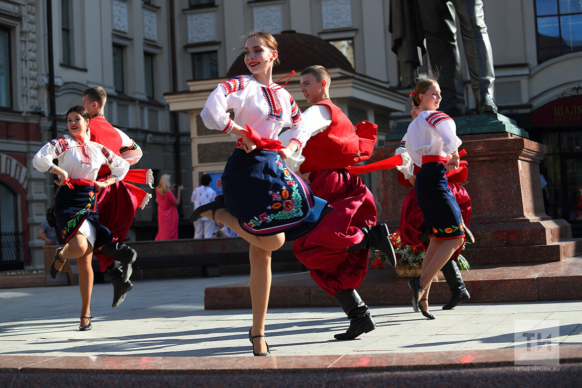 25 июня на главной пешеходной улице Казани состоялось красочное представление с национальным колоритом. Гости и жители города смогли посмотреть уже ставший традиционным концерт в честь Дня дружбы и единения славян. «По традиции около памятника Фёдору Шаляпину Русское национально-культурное объединение инициирует проведения всеобщего праздника. Так, торгово-развлекательная улица Баумана сегодня невольно завлекает огромное количество людей необычной и яркой концертной программой. Этот день не оставит равнодушным», – сказала заместитель председателя Совета Ассамблеи народов Татарстана, член Общественной палаты Республики Татарстан Ирина Александровская. Чтобы отпраздновать памятную дату, была подготовлена большая праздничная программа. На симпровизированной сцене выступили известные ансамбли «Купава», «Верес», а также хореографические группы культурного центра «Сайдаш». Артисты поделились, что, несмотря на большое количество концертов в летний период, им особенно запоминаются столь колори