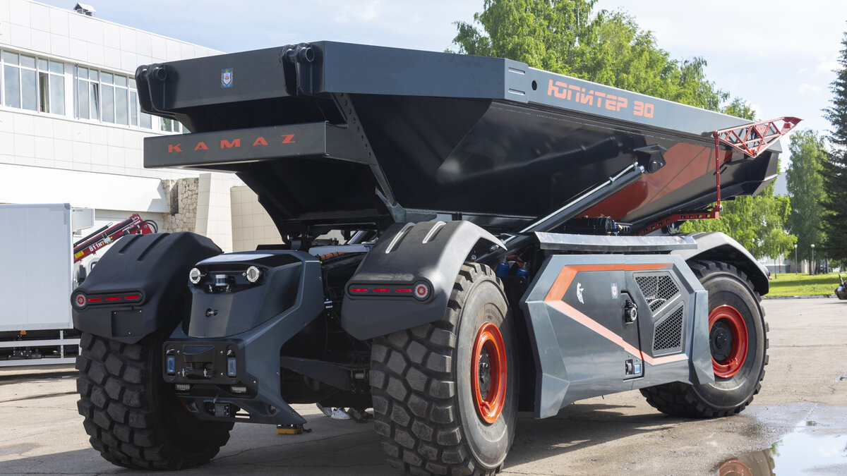Конструкторы "КамАза" вместе со специалистами МГТУ им. Н. Э. Баумана разработали уникальный самосвал "КамАЗ-6559" для карьерных работ в автономном режиме. Беспилотный автомобиль без кабины для водителя стал продолжением камазовской линейки карьерных самосвалов. Автомобиль перевозит груз весом 30 тонн в полностью автоматическом, либо дистанционном режиме на скорости не более 56 км/ч. Беспилотный полноприводный грузовик назвали "Юпитер 30". Технику могут использовать горнодобывающие компании для перевозки разрыхленной горной массы или руды. В этом случае исключается присутствие людей в опасной зоне работы большегрузных машин и экскаваторов. В систему управления "Юпитера" входят видеокамеры с защитой от пыли, грязи, влаги и вибраций, а также 2D- и 3D-лидары, ультразвуковые датчики, радары. Самосвал оснащен и GSM-антеннами и GPS/ГЛОНАСС навигацией. "Оба моста у него поворотные, за счёт чего автомобиль обладает хорошей маневренностью", – пояснил главный конструктор инновационных автомобилей