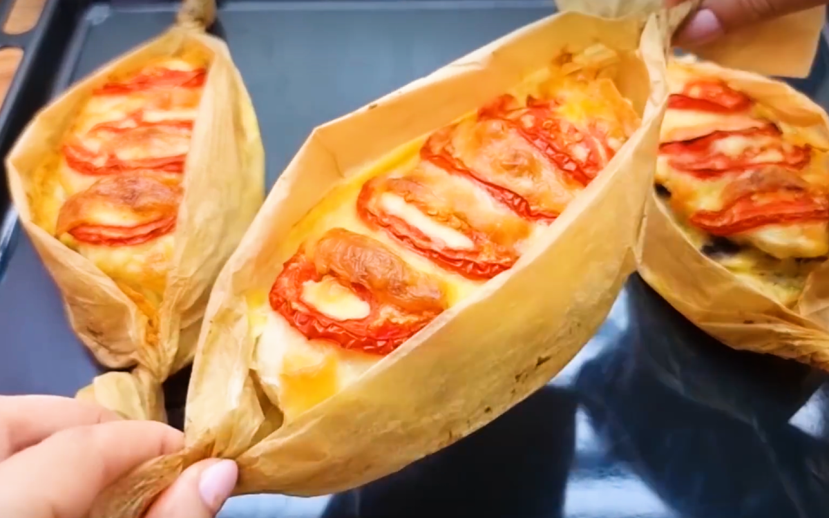 Курицу по этому рецепту вы будете готовить очень часто, ведь обычно суховатая куриная грудка получается очень сочной за счёт помидоров и вкуснейшей сырной начинки с горчицей, сметаной, чесноком и зеленью. Кроме того, запекается филе в "лодочках" из пергамента - благодаря этому сохраняется весь выделившийся сок. В этих же "лодочках" можно и подавать курицу к столу. Такое блюдо и вкусно, и красиво выглядит! Ингредиенты: 3 куриные грудки. Накрыть пищевой пленкой. Приготовление и ингредиенты: Соль, перец. 100-150 г шпината. 50 г укропа. Незаметно. 2 зубчика чеснока. 4 столовые ложки сметаны. 5 грибов. 2 помидора. 90 г моцареллы. На филе выложить начинку, а затем на грибы. Растительное масло. Сделайте из пергаментной бумаги форму, как показано на видео. Выложите на противень. Сверху выложить моцареллу и помидоры. Выпекать 35 минут при 180 ° С. 6 картошек. Растительное масло. Соль, черный перец, перец. 4 ломтика моцареллы. Укроп. Обжарить картофель до готовности. Добавьте моцареллу и у