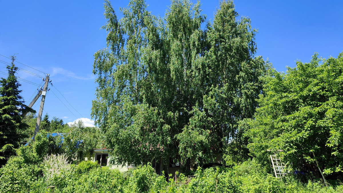 У нас на участке возле дома растут пять красивейших берез, которые дают благодатную тень и не дают перегреваться дому на жаре.