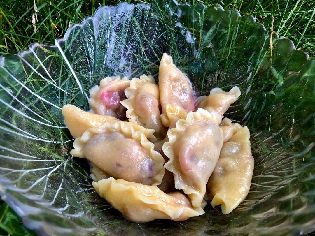 Заварне тісто для вареників (тут вареники з вишнею)