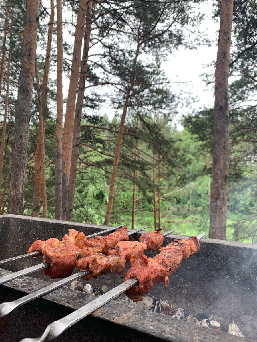 Время маринования - 8~9 часов (в холодильнике) Маринуем с вечера, перед поездкой. Количество рассчитано на компанию из 4-6 взрослых людей Ниже привожу стоимость ингредиентов по отдельности. Тюменская область. Покупал 24.06.22. Стоимость специй указывалось сразу за пачку (коробку или пакет) Сок покупали свежевыжатый, можно купить также самый простой, в среднем стоимость в районе 100 рублей за 1 литр. 1. Мясо. Свиная шея. 1 кг. 400 гр. - 656 руб. 00 коп. (цена за 1 кг. - 469 руб.) 2. Перец паприка 69 руб. 99 коп. 3. Соль 23 руб. 99 коп. 4. Томатный сок 309 руб. 99 коп. 5. Перец чёрный молотый 114 руб. 99 коп. 6. Лук репчатый (за 4 средние луковицы) 17 руб. 52 коп. 7. Чеснок 14 руб. 26 коп. Процесс: 1. Нарезаем мясо на порционные кусочки ; 2. Посыпаем с двух сторон паприкой, перцем; 3. Режем лук репчатый полукольцами, мнем. Режем головки чеснока и добавляем в лук. Добавляем нарезанное мясо и перемешиваем; 4. Добавляем соль в мясо; 5. Добавляем свежевыжатый томатный сок. У нас на т
