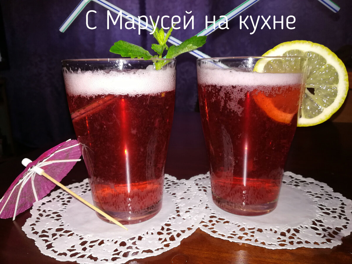 Клубнично-мятный лимонад на минеральной газированной воде.