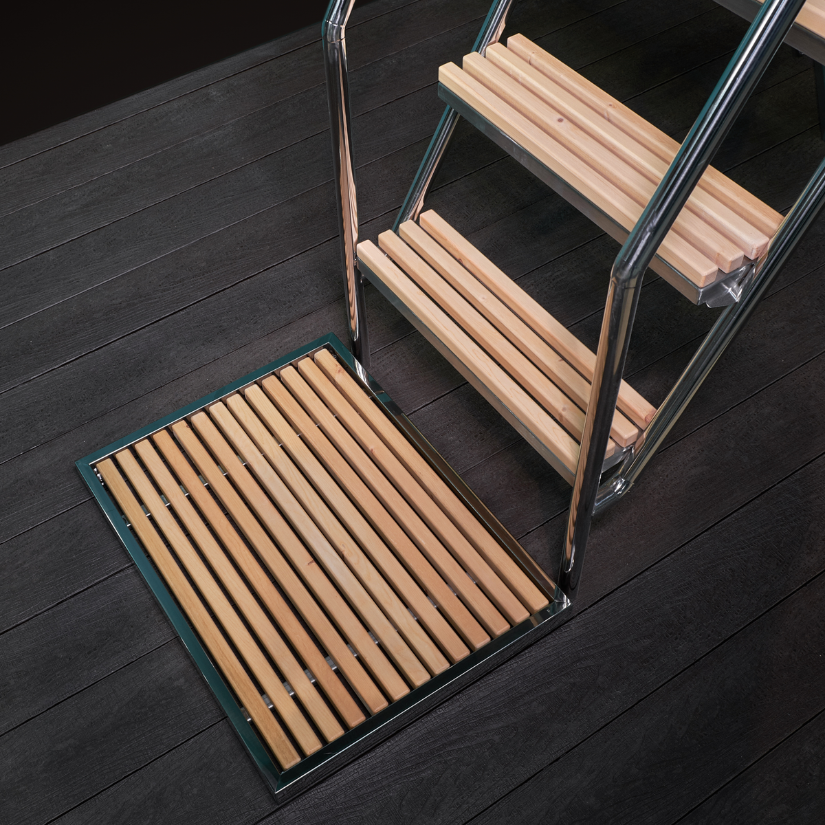 - Лестницу из нержавеющей стали с поручнями, для комфортного подъема в келлек.
