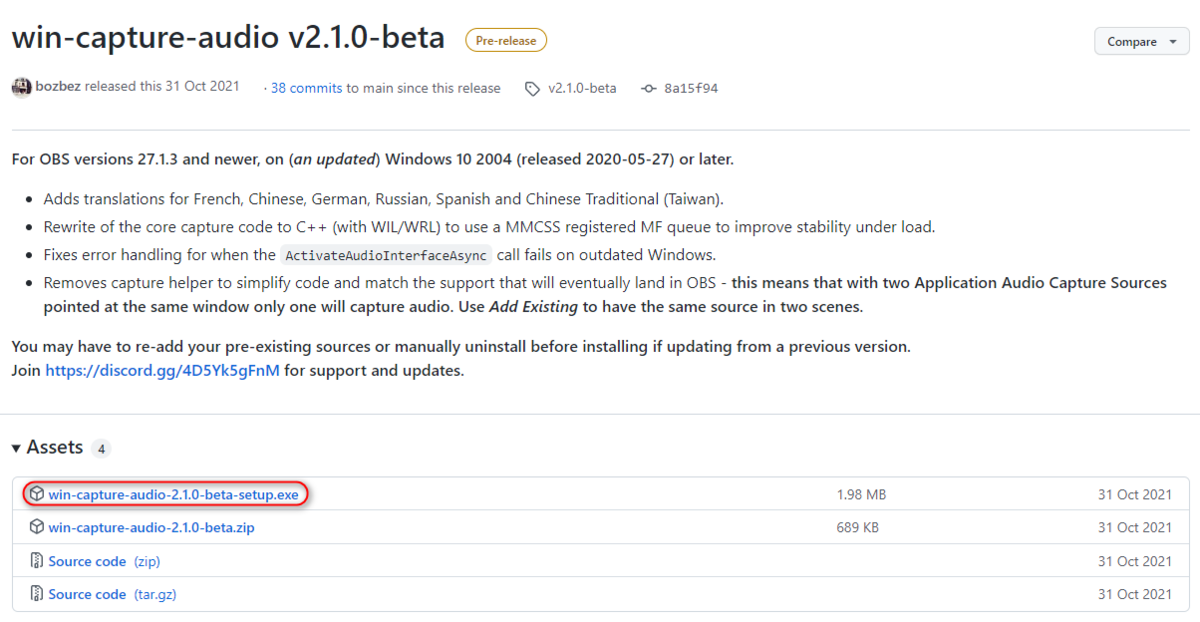 Например, я записываю игру, при этом общаюсь с другом в дискорде. Мне необходимо, чтобы аудио из игры сохранялось в отдельную звуковую дорожку для нарезки геймплея, а всё остальное было в другой дорожке. Установка плагина Скачайте плагин win-capture-audio Запустите установочной дистрибутив и выполните установку плагина Если OBS установлена не по умолчанию, тогда скачайте архивную версию плагина и переместите файлы вручную. Настройка в OBS Запустите OBS Studio и приложение, для которого вы хотите, чтобы запись звука происходила в отдельную аудиодорожку. В источниках нажмите Добавить / Захват выходного аудиопотока приложений. Укажите Название, поставьте галочку "Сделать источник видимым" Выберите необходимое приложение Если же вы хотите, чтобы при записи видео просто не было слышно, например, звука из дискорда, то укажите приложение в плагине и поставьте галочку "Захват вс