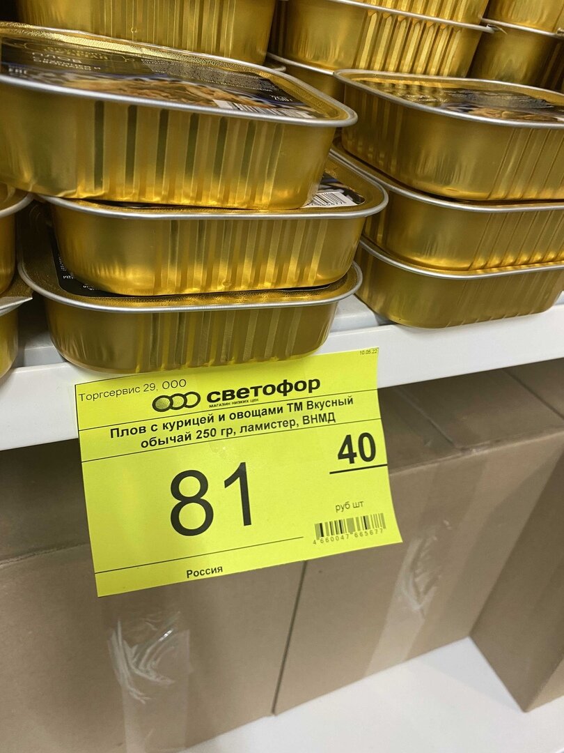 Товары в магазине "Светофор", г. Архангельск, ул. Стрелковая 19. Обзор полок от 30.06.2022 года.