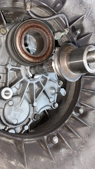 Отстыковав коробку увидели обрезанную втулку передней крышки кпп, на которой находится выжимной(в голове сплошной мат и непонимание какого это произошло вновь). В следующем повествовании я расскажу в чем было дело. Крышек кпп у нас валом,