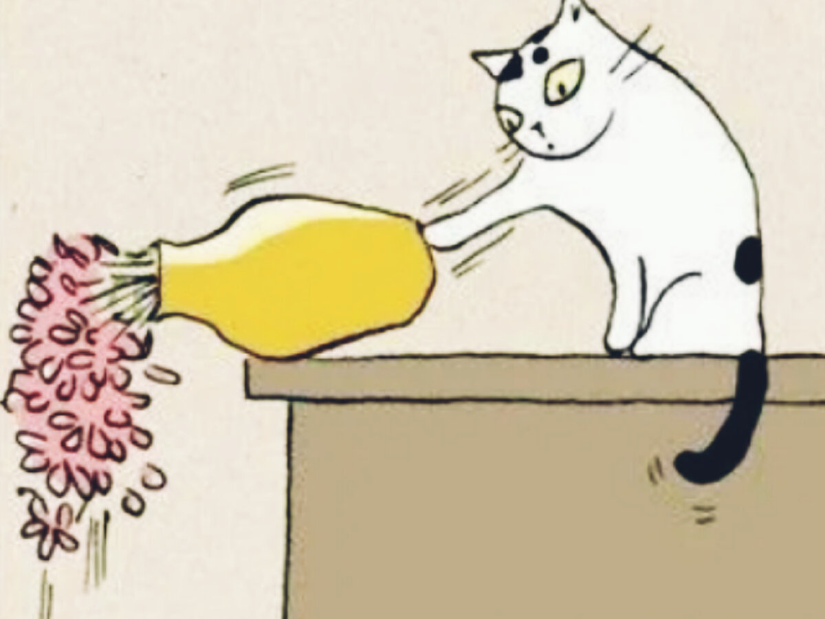 Почему кошка так внимательно наблюдает за тем, что скинула на пол